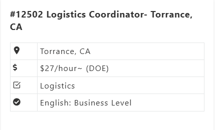 3.♯12502 Logistics Coordinator- Torrance, CA